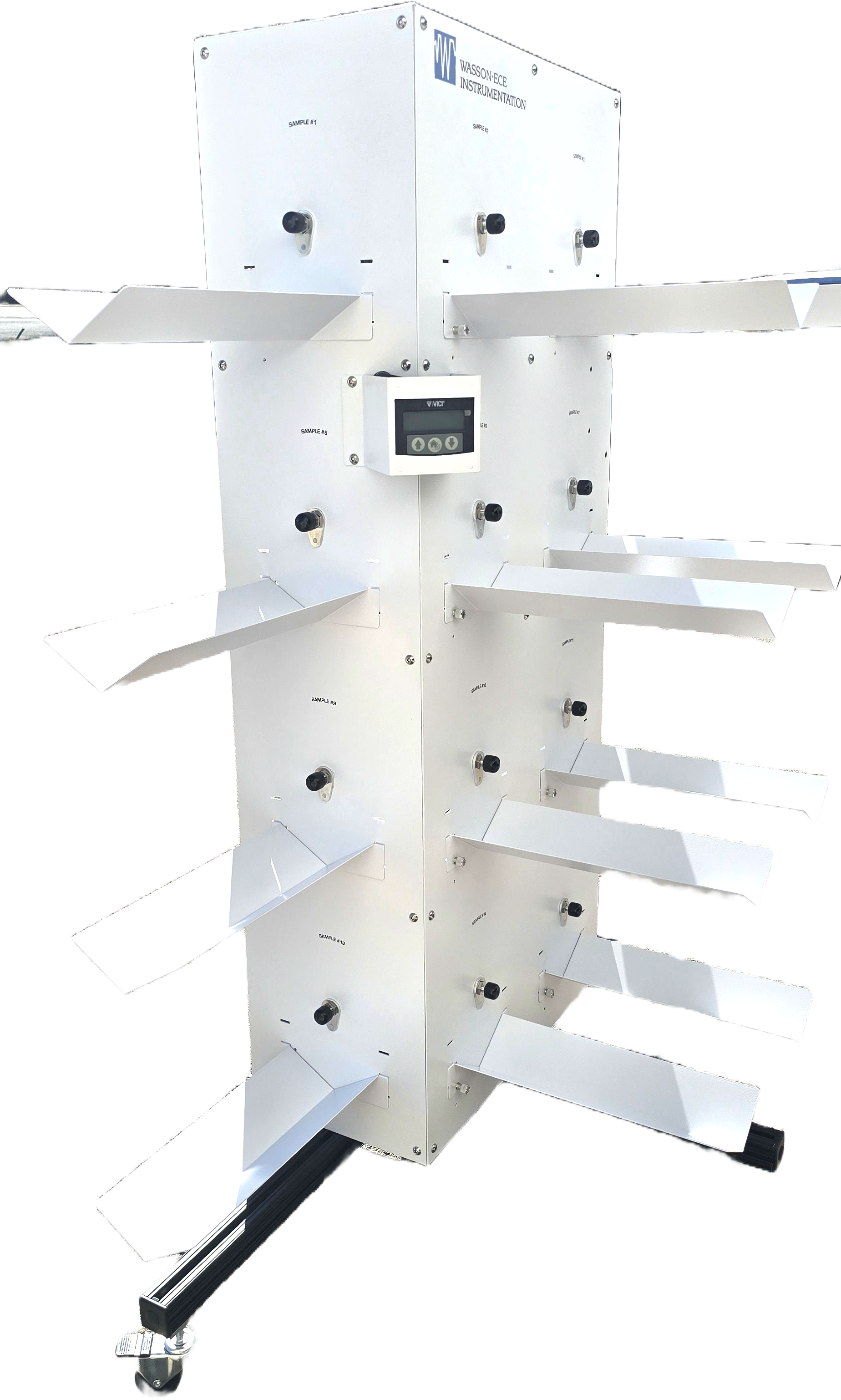 Wasson-ECE’s Canister ‘Tree’ Gas Autosampler is custom designed with 16 shelves that can be modified for specific models/sizes of canisters, Tedlar bags and cylinders. This system is designed for both ambient and pressurized samples; a stop flow valve is included for pressurized samples.